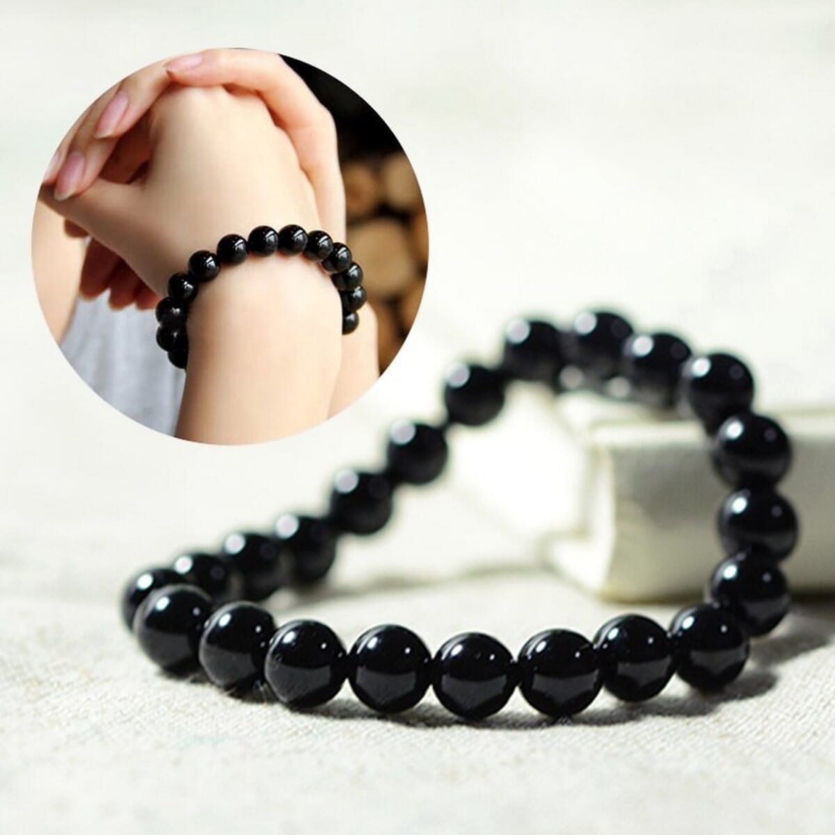 This is a Black Beads Bracelet designed for both men and women. It is a unisex product that is currently trending as fashionable jewelry, suitable for everyone. It is made with high-quality black beads that are carefully strung together to create a sleek and stylish accessory. The bracelet features a durable elastic band, ensuring a comfortable fit for any wrist size.